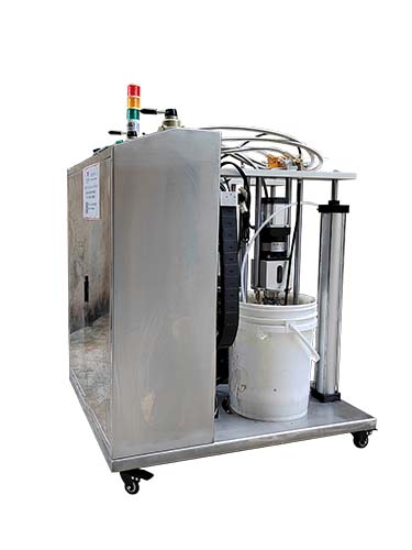 4. 使用时只需控制升降机构的开关,将压盘压入胶桶,打开气源开关,配合计量泵均匀出胶,不拉丝,无大头现象.